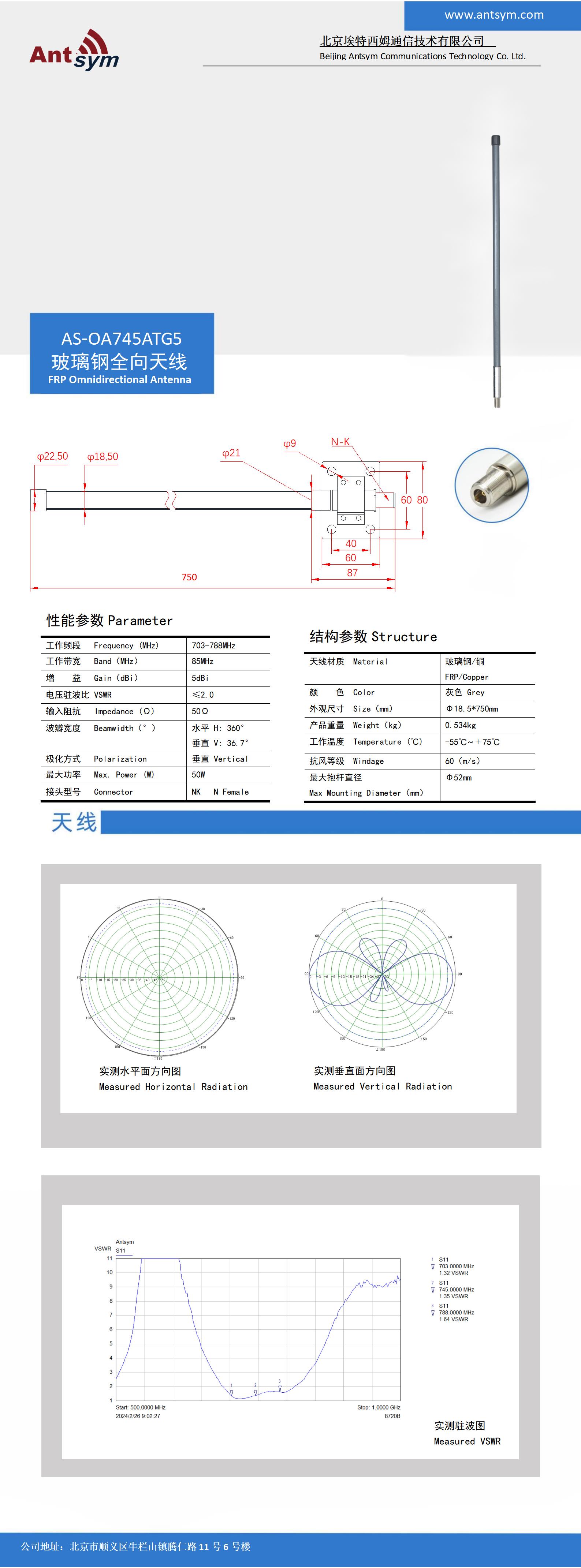 特点:驻波小,增益中等,电性能稳定可靠,通信效果上佳;采用优质玻璃钢管封装,防护等级高,防雨、防晒、防腐蚀、抗老化;结构坚挺牢固,外形美观大方,尺寸小,重量轻,抗风能力强;抱杆安装,配备钢材质安装夹具,便捷牢固