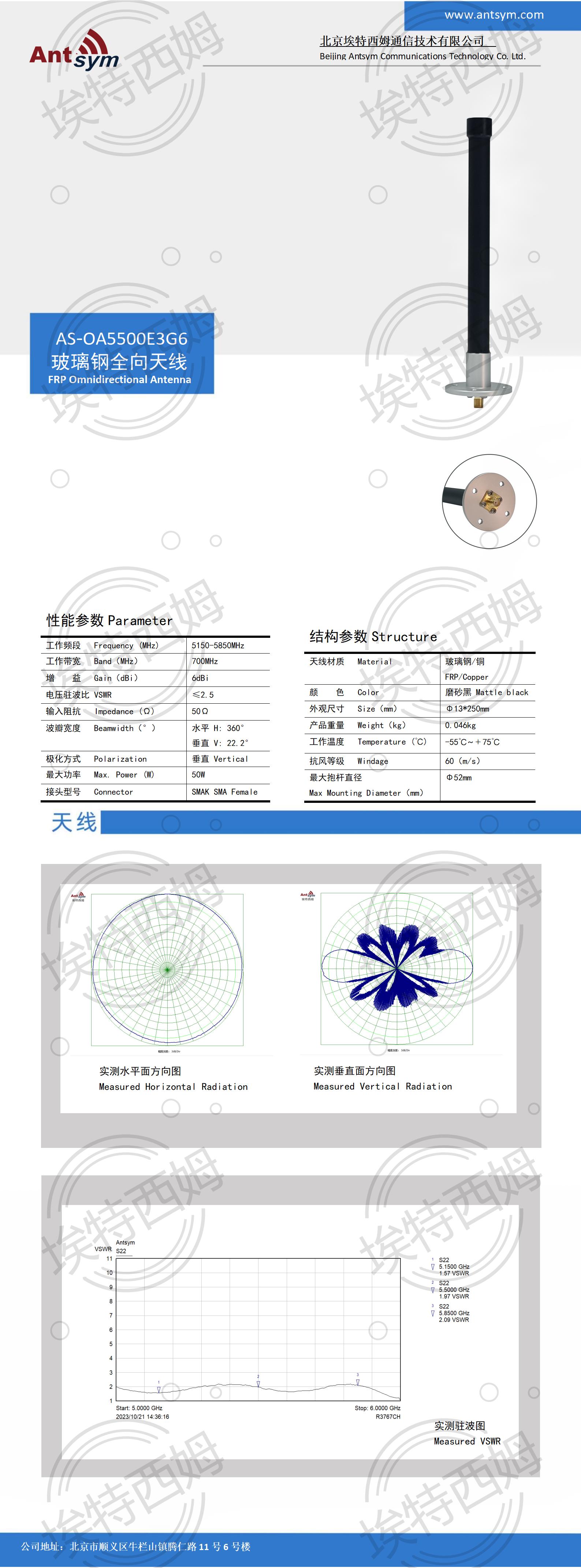 5150-5850MHz 6dBi 全向玻璃钢天线(法兰盘结构)