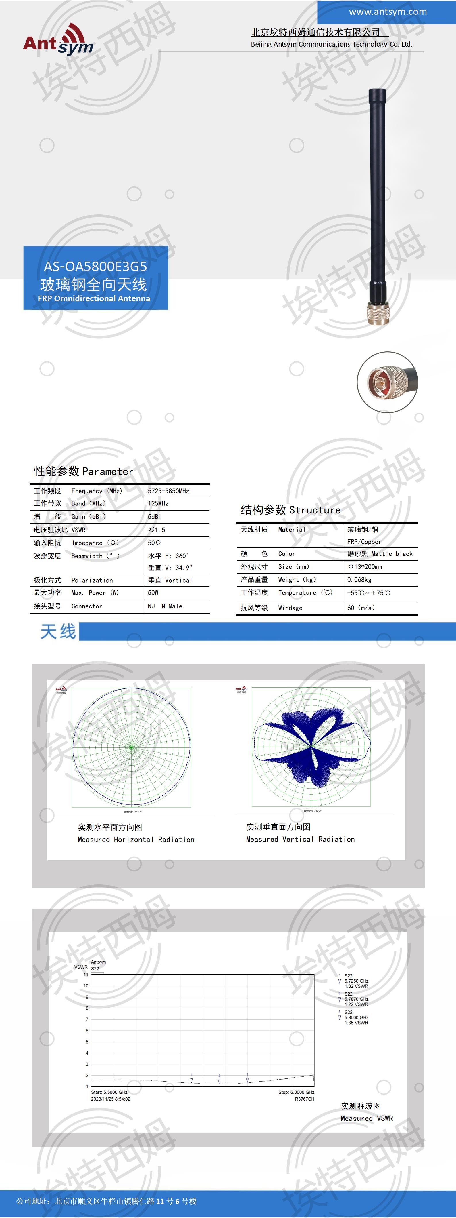 5725-5850MHz 5dBi 玻璃钢天线
