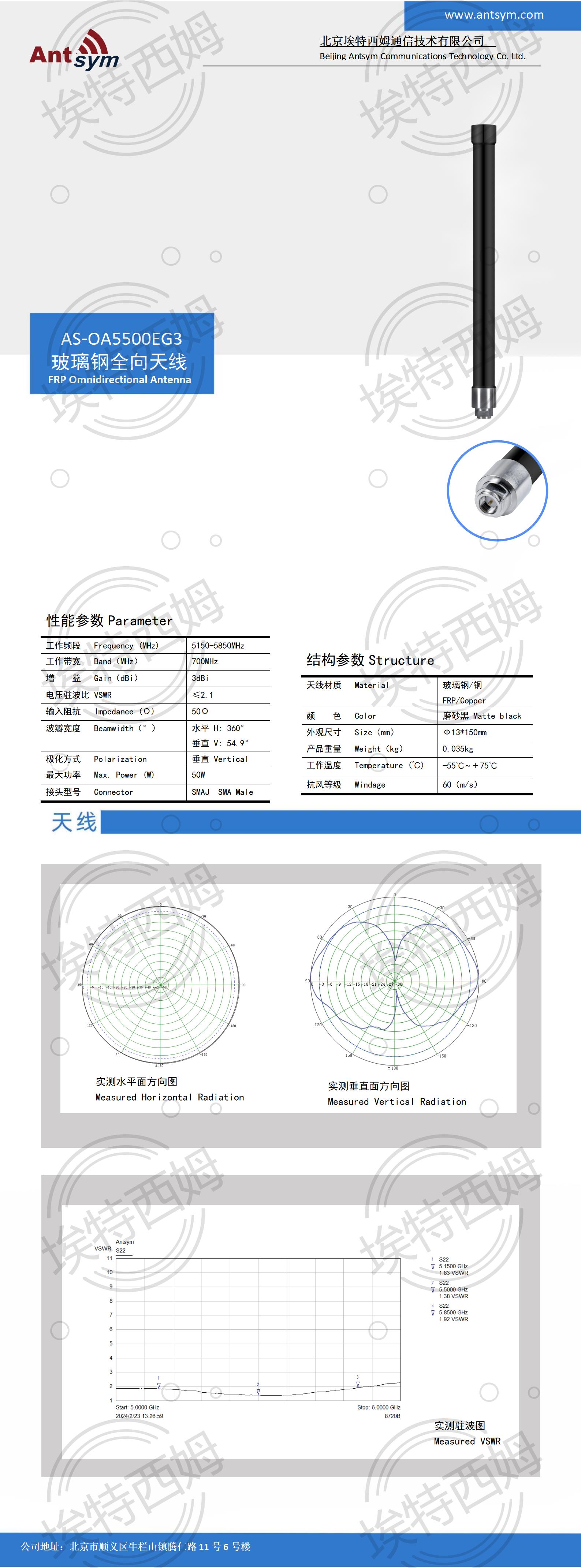 5150-5850MHz 3dBi 全向玻璃钢天线