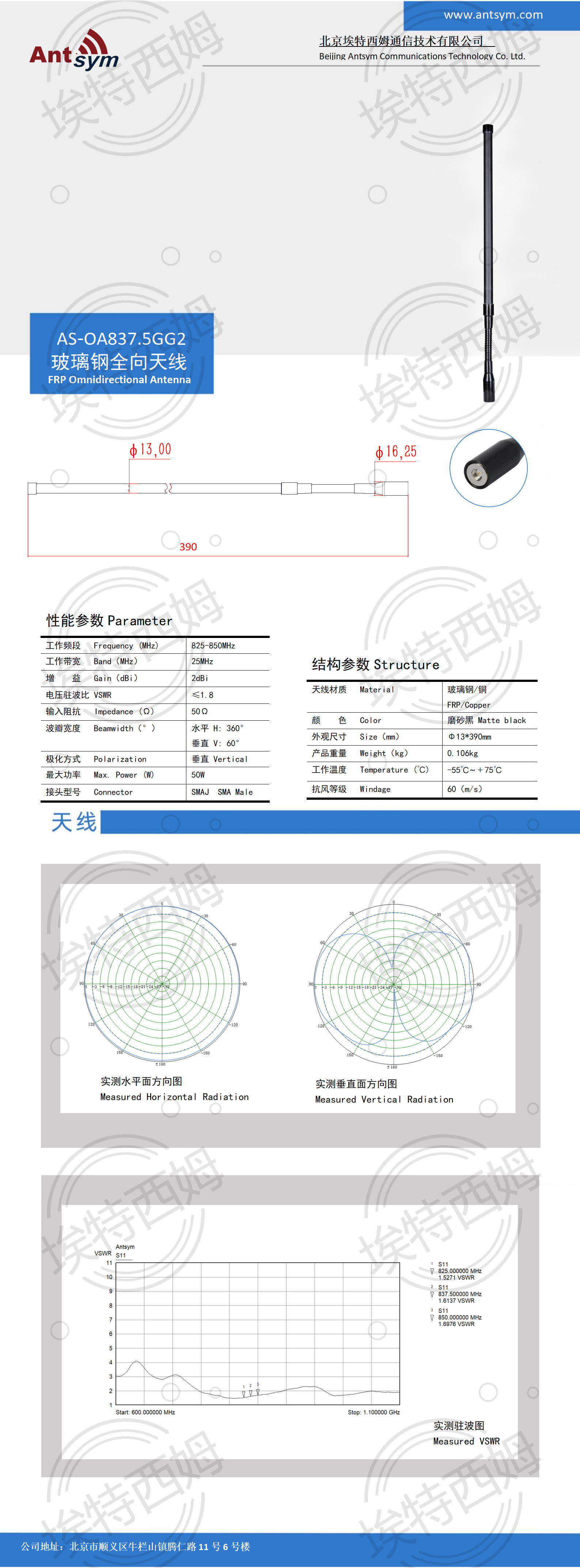 特点:825-850MHz 2dBi 鹅颈天线是一款为特定频段优化的、以安装灵活性和全向覆盖为核心优势的天线,是许多商用/工业固定无线设备在良好信号环境下的理想选择