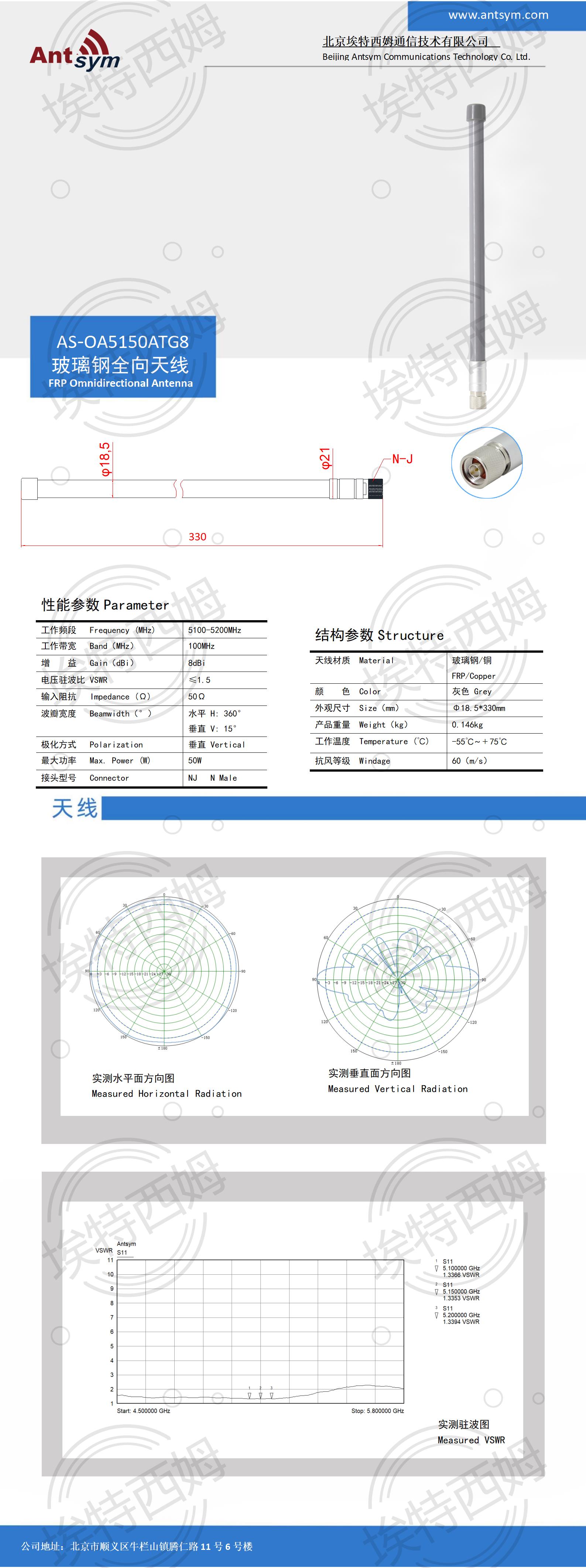 5100-5200MHz 8dBi 全向玻璃钢天线