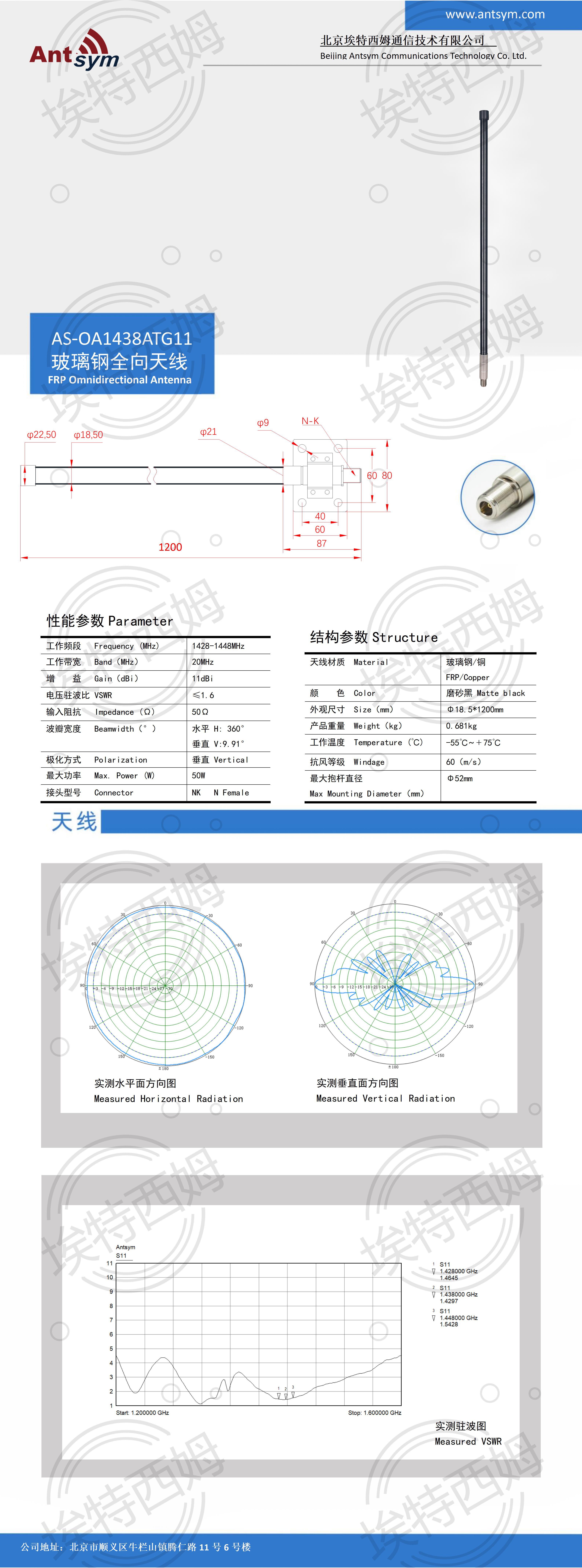 1428-1448MHz 11dBi 全向玻璃钢天线