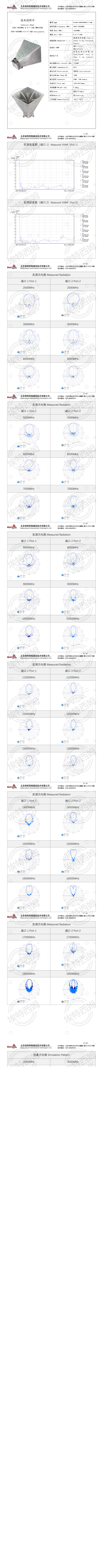 2000-18000MHz8.5-17.5dBi双极化四脊喇叭天线